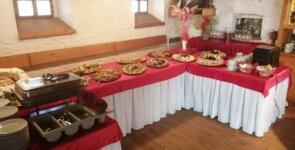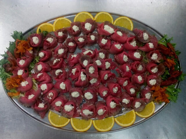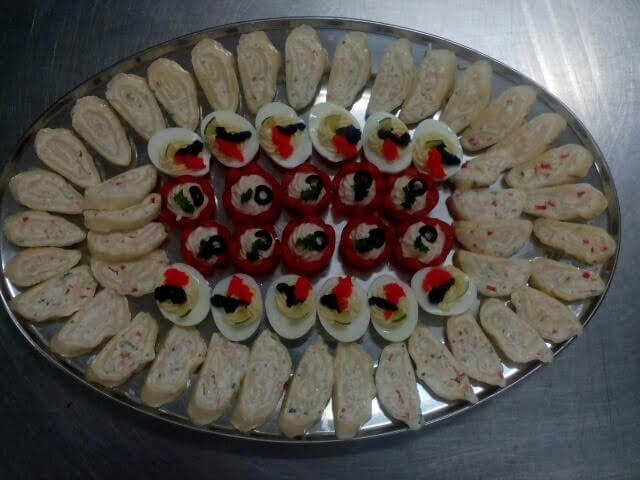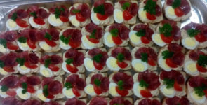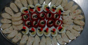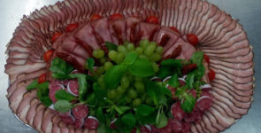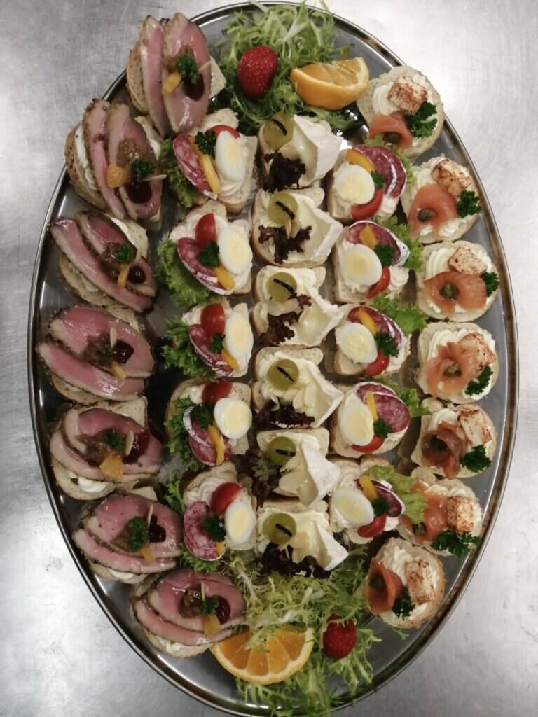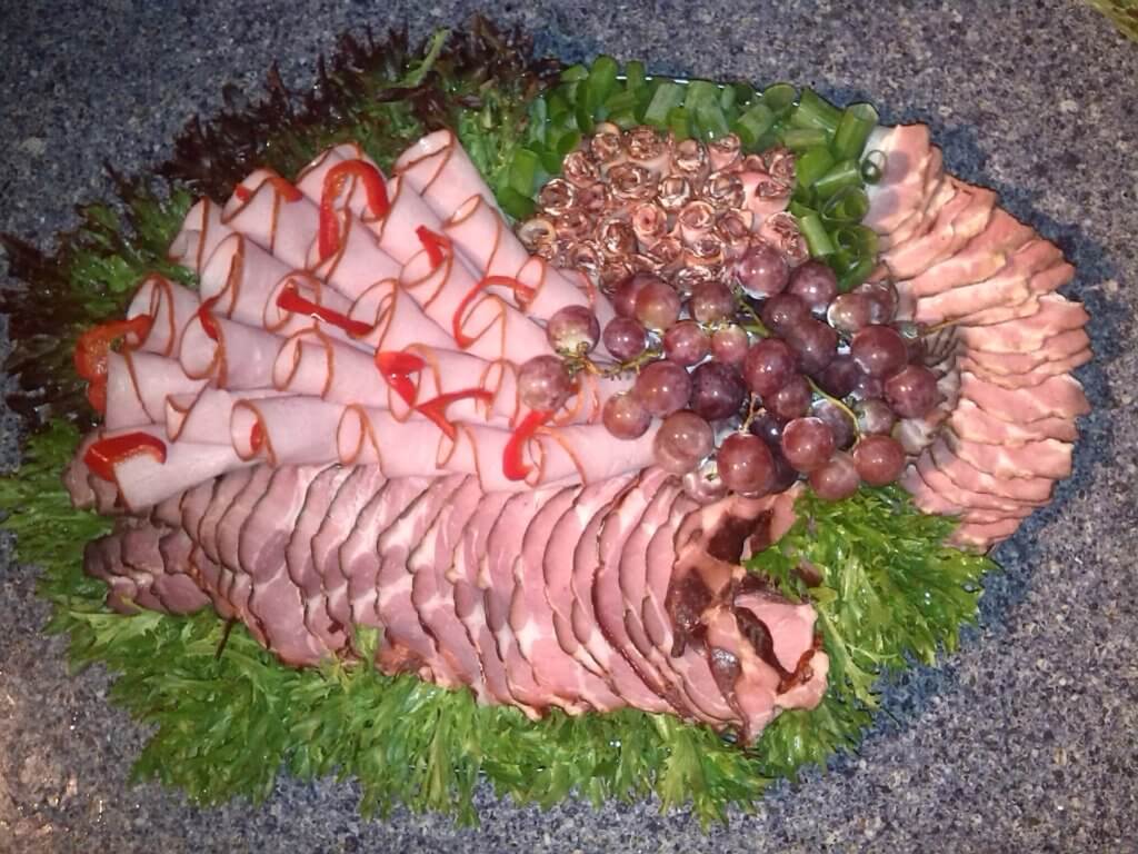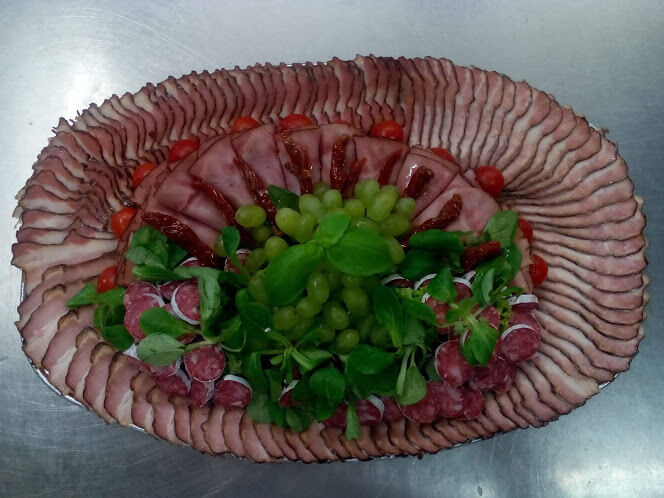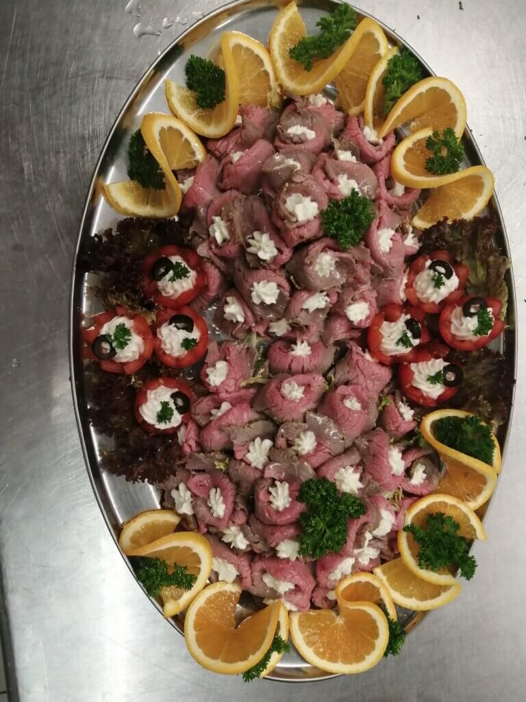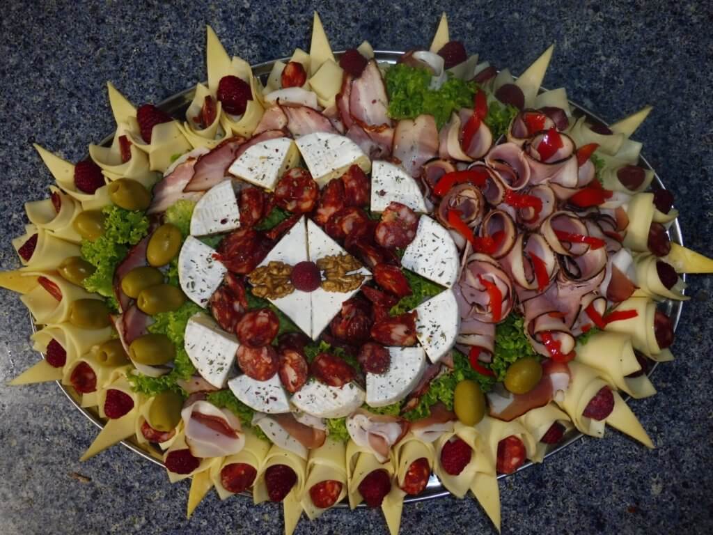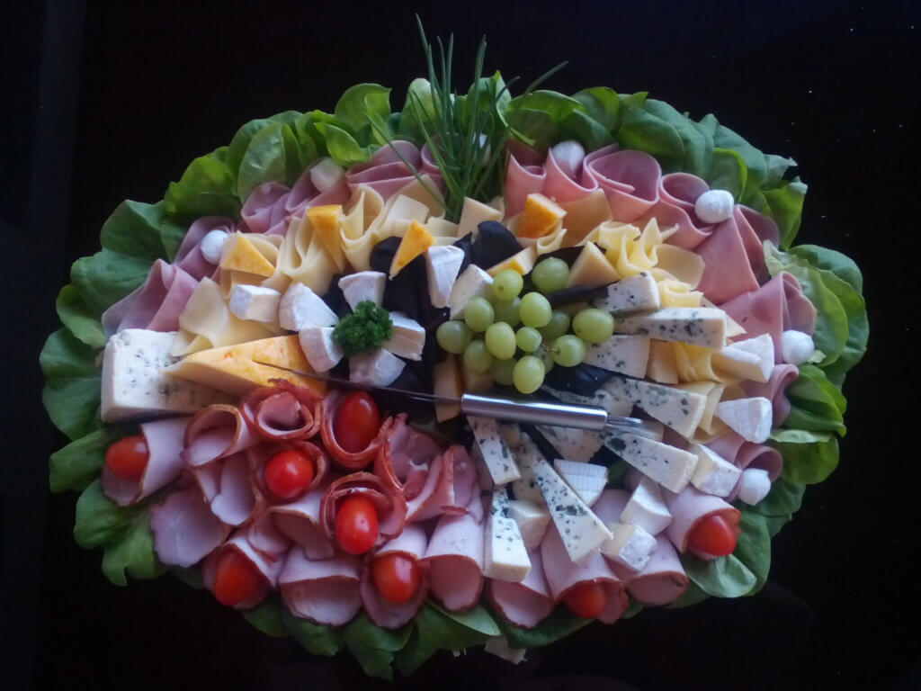 Vyrábíme různé druhy obložených mís z vysoce kvalitních uzenin a sýrů, ovoce a zeleniny. Různě zdobíme na mísy – marinované kuřecí křidélka, paličky, vepřové a kuřecí mini řízečky, rolády různých náplní. Dále zajistíme chlebíčky, kanapky, drobné chuťovky, kulinářské speciality, mini zákusky vše dle přání zákazníka. naložené a uzené kýty, selata, krůty i steaky. Celý cateringový servis zajišťujeme na klíč, včetně pronájmu chladícího vozu po dobu konání akce.